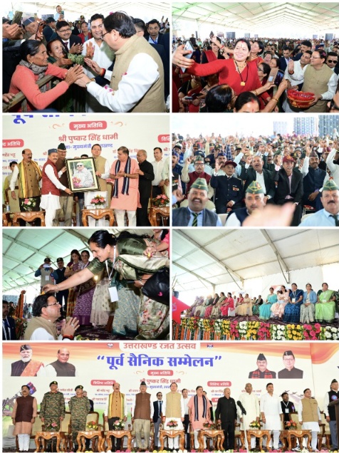 मुख्यमंत्री ने उपस्थित पूर्व सैनिकों पर पुष्पवर्षा कर राज्य निर्माण व राष्ट्र सेवा में उनके योगदान के लिये सभी का अभिनन्दन किया। उन्होंने कहा कि उत्तराखंड का हर परिवार गर्व से कह सकता है कि उसके घर से कोई न कोई भारत माता की सेवा में समर्पित है। मुख्यमंत्री ने कहा कि देवभूमि उत्तराखंड वास्तव में वीरभूमि है, जहाँ की माटी में ही राष्ट्रभक्ति और बलिदान की भावना रची-बसी है।