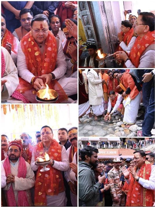 गंगोत्री धाम के कपाटोद्घाटन समारोह में प्रतिभाग करते हुए मुख्यमंत्री श्री पुष्कर सिंह धामी ने मॉं गंगा के मंदिर में शीश नवाया और विशेष पूजा-अर्चना की और देव डोली से आशीष भी प्राप्त किया।